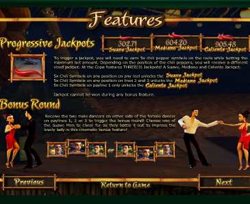 Главные герои игрового автомата на деньги под названием At The Copa — трио танцоров: Каролина, Рико и Педро. Все они танцуют заводные латиноамериканские танцы. Однако двое соперничают за право плясать с Каролиной. Кто же выйдет победителем из данной схватки? Веселье, алкоголь, игра на реальные деньги — все, что нужно для отличного игрового аппарата онлайн?