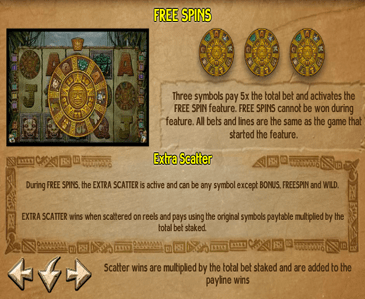 - Free Spins (каменное колесо) – тройное появление сулит выплату в размере 5 суммарных ставок на раунд и запускает фриспины с дополнительным скаттером;