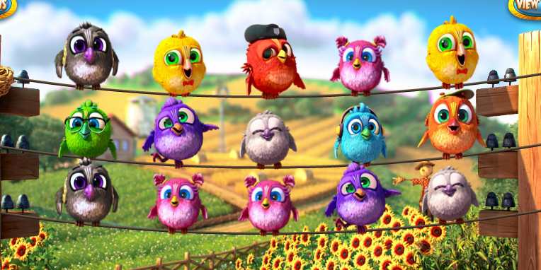 Слот Birds от разработчика BetSoft Gaming — про пернатых друзей, сидящих на проводах. Правда, птички совершенно не злые. В отличие от своих родственников из игры Angry birds — эти добрые, и их хочется тискать!