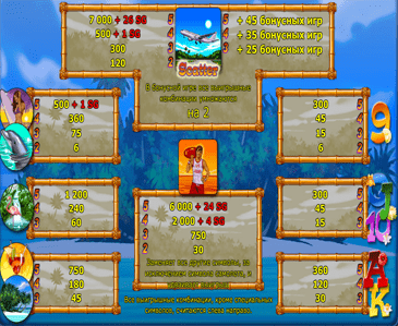 Слот онлайн окунает в мир приключений и романтики на пяти барабанах и двадцати игровых линиях. Все изображения соответствуют тематики и, конечно же, тут не обошлось без дикого символа. Благодаря, ему пользователь имеет возможность заменить любой другой символ. Скарлетт изображен в виде самолета, который сможет увезти на теплые Карибские острова.