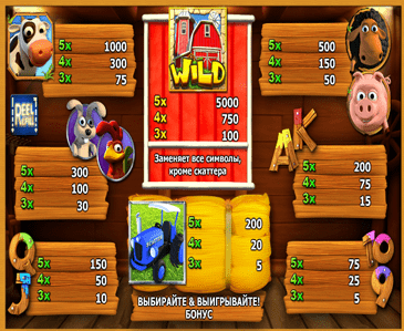 В процессе игры можно открыть бонусный раунд, это происходить когда на экране появляется три и больше символов разброса. Пользователям рекомендуется собирать тюки с сеном, которые скрывают определенное вознаграждение. Этот процесс будет продолжаться до тех пор, пока не выпадет доллар. Только после этого бонусный тур будет пройден, а вся выигранная сумма зачислена геймеру.