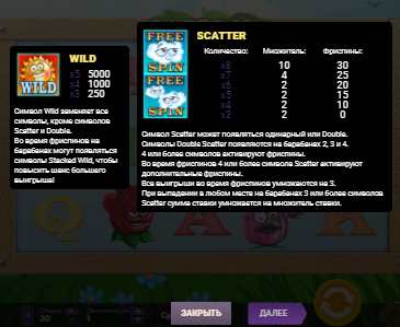 Третий тип – специальные. Это одинарные и двойные Scatter и Wild. Обе разновидности скаттеров изображают облако/облака и приносят выплаты в формате множителей ставки, а также активируют действие раунда с фриспинами.