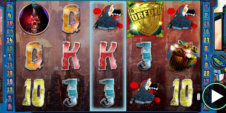 Все 25 линий пятибарабанного автомата Судья Дредд активны по умолчанию. Принимается до 50 евро на раунд (от 0,01 до 2 на позицию) в Vulcan Stavka Casino. Остановки барабанов, образующие непрерывные последовательности картинок одного типа, оплачиваются согласно таблице коэффициентов (до х2000). Эти иконки должны заполнить активную полосу, начиная слева. Если выплат несколько, игрок забирает общую сумму. Или соглашается рискнуть выигрышем в игре на равные шансы: правильный выбор цвета или масти закрытой карты увеличит приз вдвое или вчетверо. Но ошибка обнуляет счет.