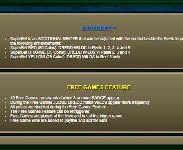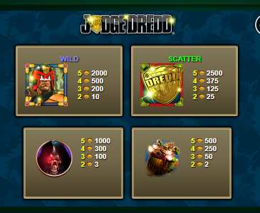 - Wild (Дредд) составляет оплачиваемые комбинации, заменяет базовые изображения в выгодных позициях. «Дикий» символ обретает особое значение в режиме SuperBet (ставку можно поднять до 100 евро);