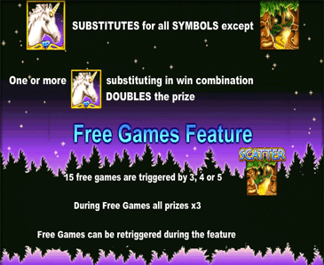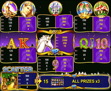 В загадочном игровом автомате Unicorn Magic на реальные деньги главным персонажем является единорог. Вместе с ним обитают такие герои, как гномы, принцесса, вековые деревья и многие другие. Каждый из них имеет свою цену и приносит пользователю определенный выигрыш. Этот слот отлично подойдет любителям такого, как Magic Money. Основные характеристики: